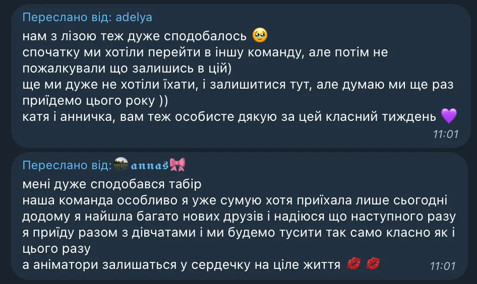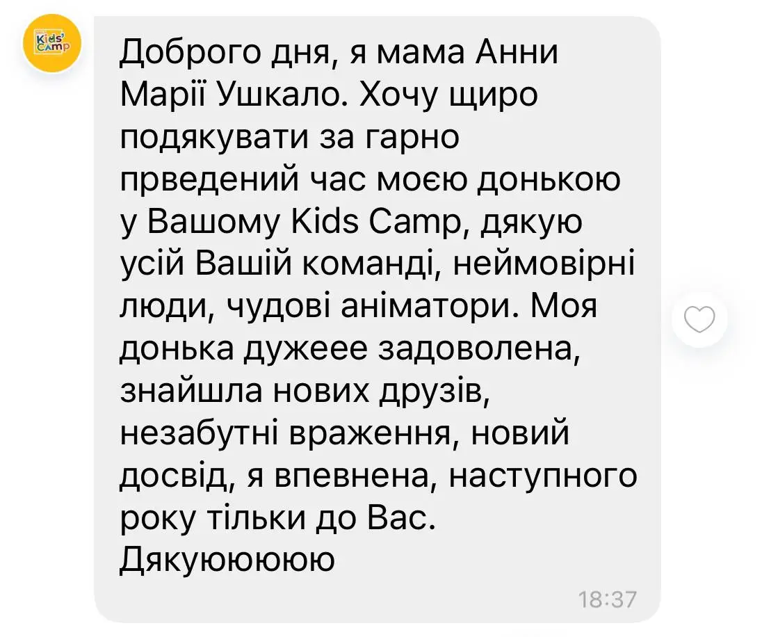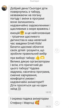 Ми повністю розуміємо, що перший табір може бути хвилюючим для батьків і дітей. Щоб зменшити ваші переживання, ми радимо зазирнути в наш Instagram або інші соціальні мережі, де ви зможете побачити фото і відео з наших попередніх таборів. А кваліфіковані аніматори знайдуть підхід до кожної дитини, ось побачите😉
