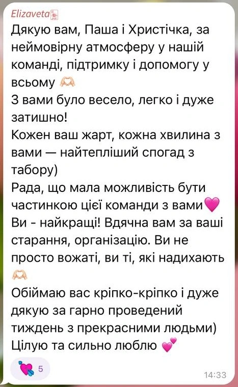 Як тільки аніматорам приходить сповіщення про тривогу, активності припиняються і всі прямують в надійне укриття на території. Телефони роздаються дітям для зв’язку з батьками. Наш пріоритет – забезпечити безпеку в разі будь-яких непередбачуваних ситуацій.