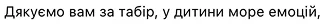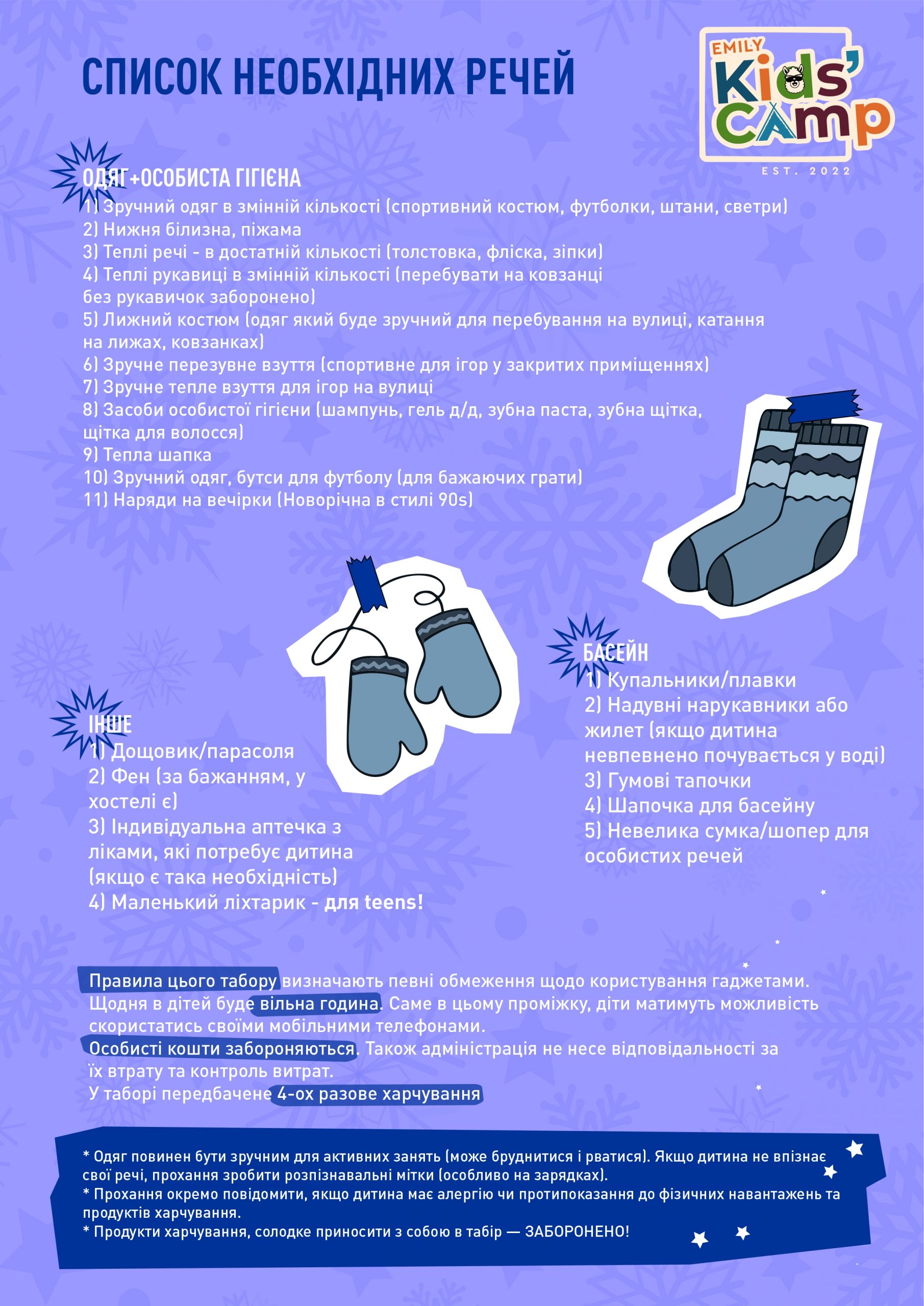 *Адміністрація табору не несе відповідальність за втрату цінних речей, якщо вони не були здані на зберігання.